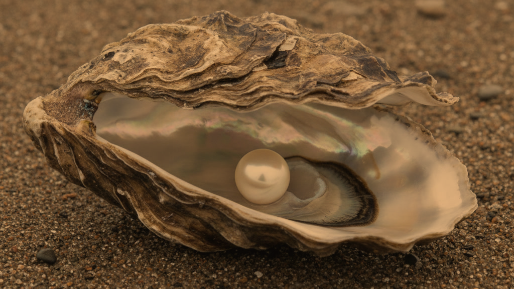George stays on the sand just a beat too long — dramatically, unnecessarily — savoring the ripple of laughter. As they roll to sit up, something glints at the edge of their vision. One oyster in the tidepool has opened the faintest amount. Not much, but enough to reveal a shimmer. That tedious grain it had endured for so long has quietly become a pearl.