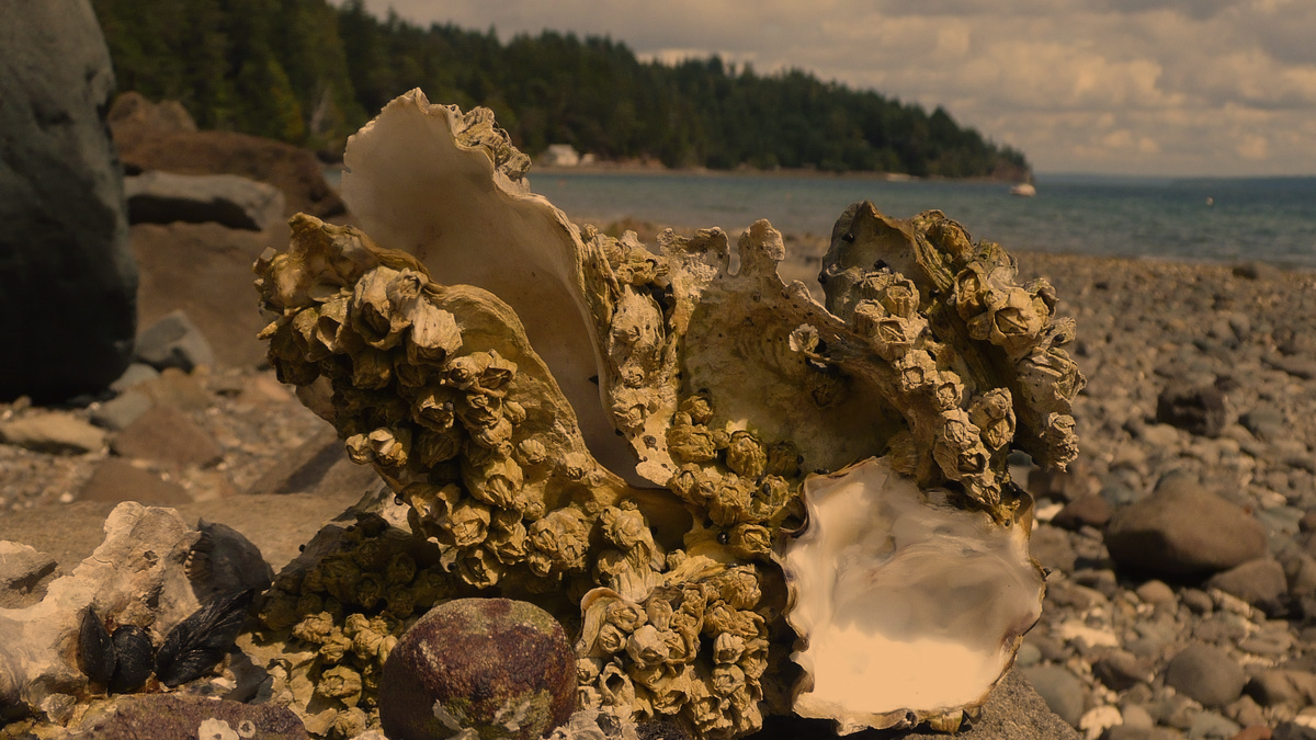 George suggests a walk to the tidepools. The group follows, shuffling through sand and sea grass. The oyster bed sits quiet, each shell clenched tight as if guarding some small irritation. It mirrors their mood — stuck, waiting, unsure when something will shift.